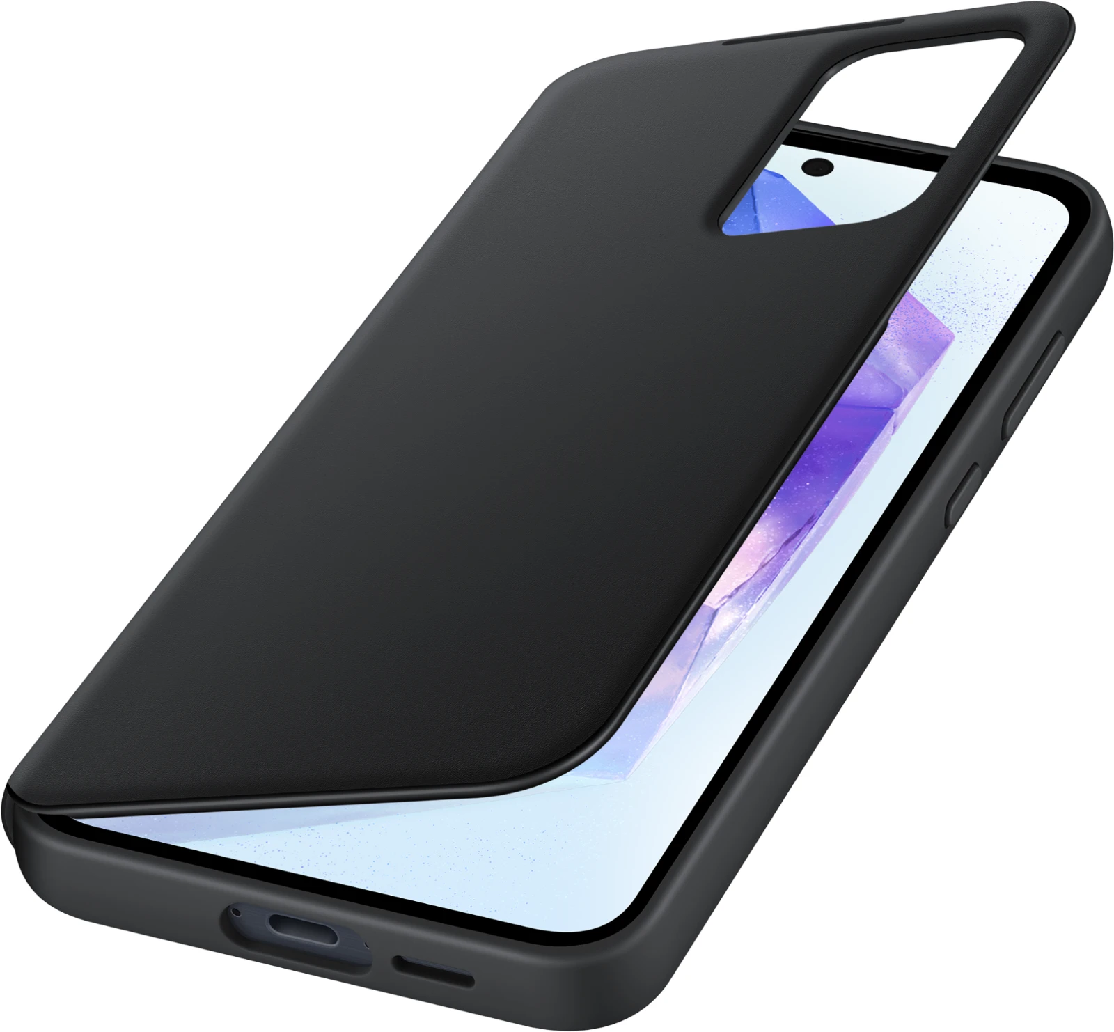 Mit dem Smart View Wallet Case schützt du dein Galaxy A55 5G gut und smart. Über das Sichtfenster kannst du dein Smartphone bedienen. Nimm Anrufe an oder lehne sie ab, bleib über Benachrichtigungen auf dem Laufenden oder überprüfe den Akkustatus – alles ganz bequem ohne das Case öffnen zu müssen. Und wenn du das Case öffnest, findest du eine praktische Kartenhalterung in der Innenseite, damit du deine wichtigsten Karten schnell zur Hand hast. Außerdem kann das Smart View Wallet Case nicht nur die Rückseite deines Smartphones, sondern auch das Display vor Kratzern und bei Stürzen schützen.